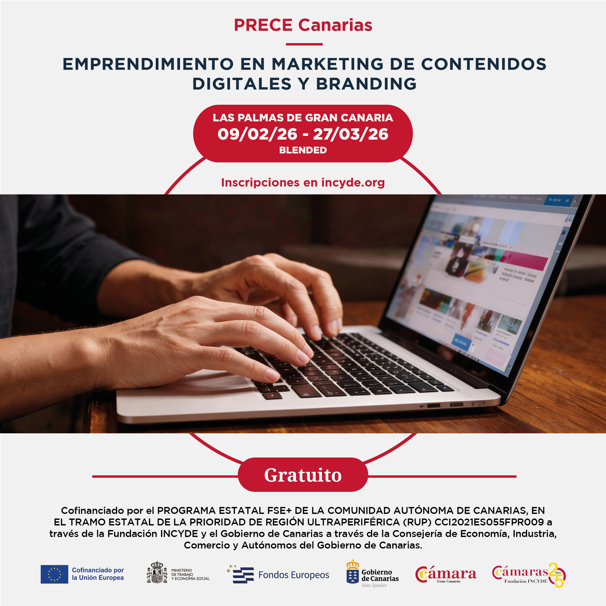 Para más información e inscripción: https://incyde.org/formacion/programa/prece-canarias-emprendimiento-en-marketing-de-contenidos-digitales-y-branding-las-palmas-de-gran-canaria_rupeb2524/