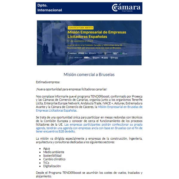 Organizamos visitas a destinos comerciales de interés con el objetivo de establecer contactos, participar en ferias y fortalecer las relaciones comerciales en mercados extranjeros.