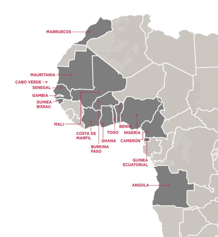 Conexión aérea directa con 12 ciudades africanas repartidas en 5 países del continente.