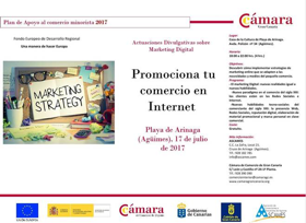 ¿Tiene dificultades el pequeño comercio para adaptarse al entorno tecnológico? ¿No puede competir en igualdad de condiciones con los grandes comercios?¿Quieren saber que hacer?. El próximo 17 de julio, de 18:00 a 22:00 h., en la casa de la cultura de Playa de Arinaga, Agüimes, podrás descubrir cómo hacerlo en la jornada divulgativa PROMOCIONA TU COMERCIO EN INTERNET, organizada dentro del Plan de Apoyo al Comercio Minorista 2017, financiado por el Ministerio de Economía, Industria y Competitividad y el FEDER.