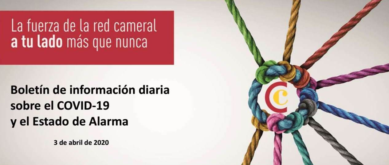 Publicamos el Boletín de Información diaria sobre el COVID-19 y el Estado de Alarma del 3/04/2020 con nuevas medidas del Gobierno. Ayer el Gobierno de Canarias ha aprobado nuevas medidas para proteger la economía y recucir la burocracia ante la crisis del COVID-19 y ha publicado hoy un decreto-ley que aliviará las dificultades de liquidez de los autónomos y agilizará las respuestas de la Administración. El Boletín incluye una recopilación elaborado por la Cámara de España sobre de las decisiones tomadas desde el pasado 9 de marzo para actuar ante la crisis sanitaria y económica.
