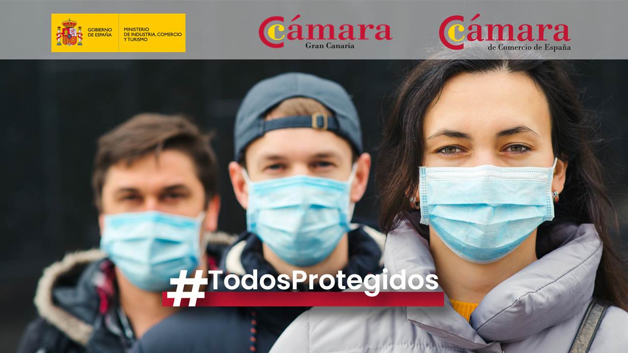 El Ministerio de Industria, Comercio y Turismo, a través de la Secretaría General de Industria y Pyme, y la Cámara de Comercio de España con toda la red cameral, incluidas las cuatro Cámaras Canarias, ponen en marcha el portal informativo todosprotegidos.camara.es que reflejará la oferta y demanda de elementos y equipos de protección (mascarillas, guantes, protectores visuales, batas y soluciones hidroalcohólicas) en toda España.