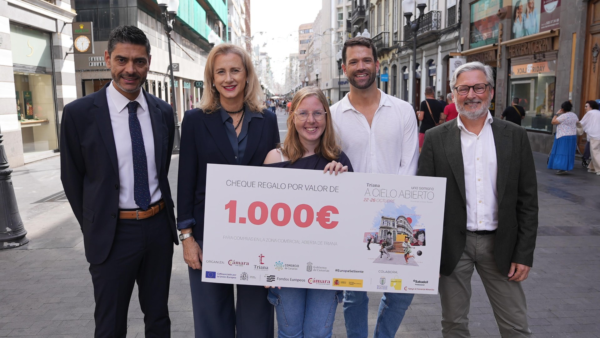 Algún artículo de belleza, una visita a una tienda infantil, detalles para el hogar, una parada para reponer fuerzas y sobre todo ropa y calzado. Así han disfrutado Néstor y su pareja, Patricia Segura, de una inolvidable mañana de compras. Precisamente ella era la encargada de recoger el cheque regalo unos días antes en la oficina del Banco Sabadell en Triana, entidad que aporta la cuantía del premio, de manos de Ramón Redondo, director de Comercio Interior y Empleo de la Cámara de Comercio de Gran Canaria, Luisa Julia Quevedo, directora Regional de Canarias del Banco Sabadell, José Ángel Quintero, director de la oficina Triana - Rafael Cabrera del Banco Sabadell y Marc Llobet, secretario de la Asociación de Empresarios Zona Triana.