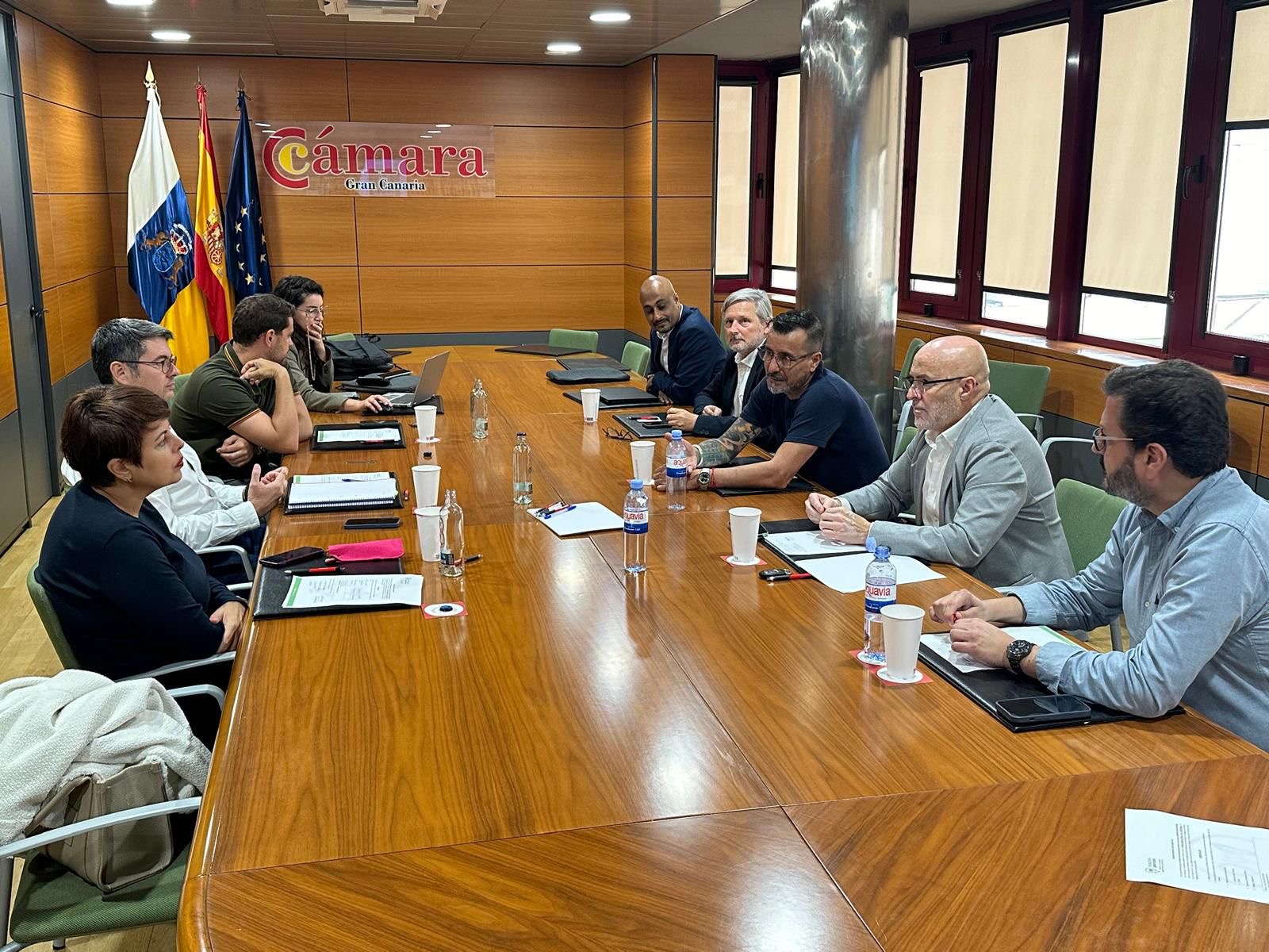 La junta directiva del Clúster Innova Gastrocan, presidida por Eugenio Sánchez, mantuvo un encuentro en la Cámara con la consejera de Desarrollo Económico del Cabildo de Gran Canaria, Minerva Alonso, y el director insular de Industria y Comercio, Juan Manuel Gabella, con el objetivo de poner en común diferentes iniciativas que apuestan por impulsar la innovación en la gastronomía de la isla, desde la cocina, la sala, la pastelería o la materia prima local.