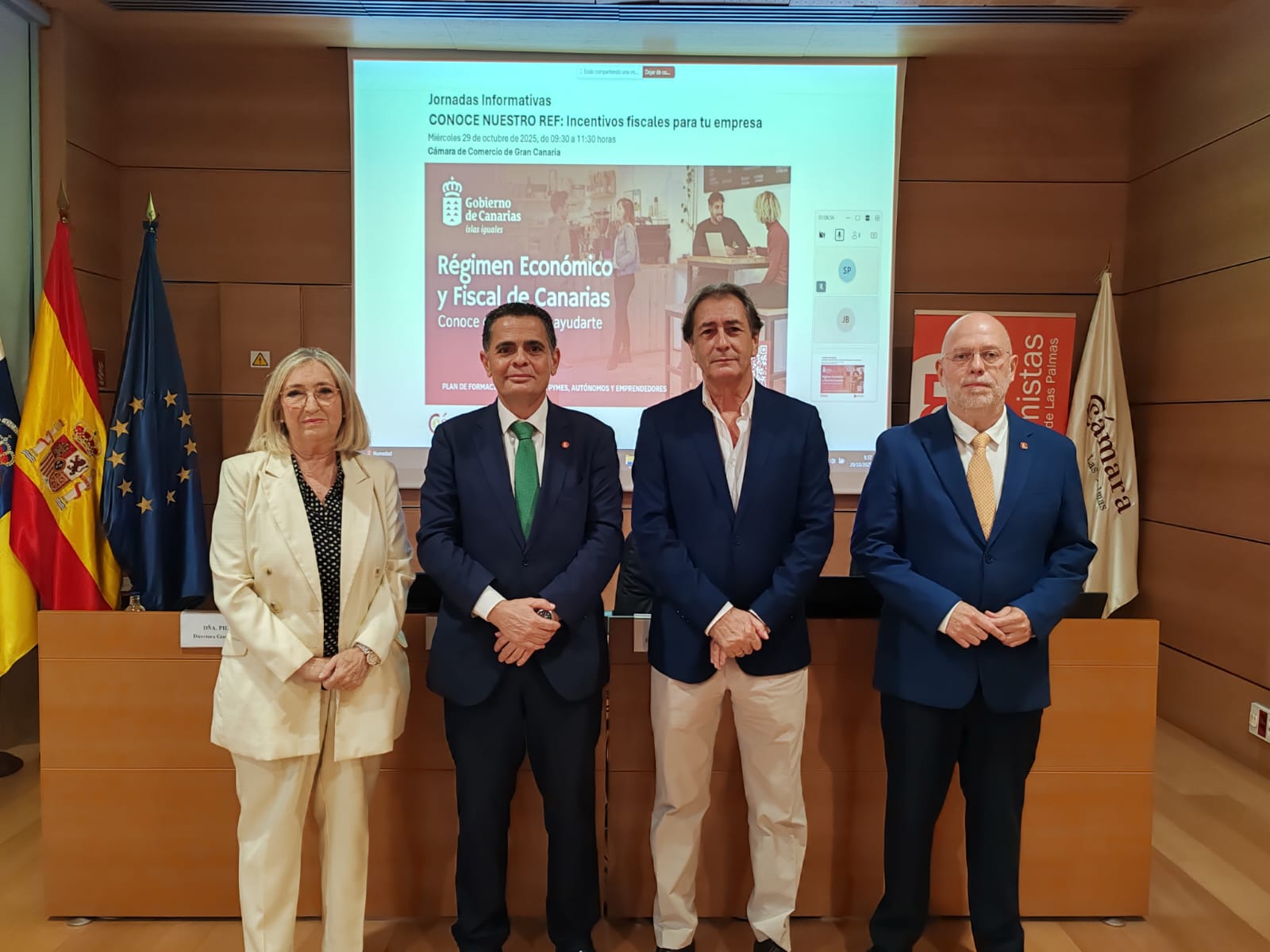 La jornada contó con la participación institucional del presidente de la Cámara de Comercio de Gran Canaria, Luis Padrón; el decano del Colegio de Economistas de Las Palmas, Alcibíades Trancho; la directora de la Cámara, Pilar Alcaide; y el comisionado del REF, José Ramón Barrera, quien intervino de forma online.
