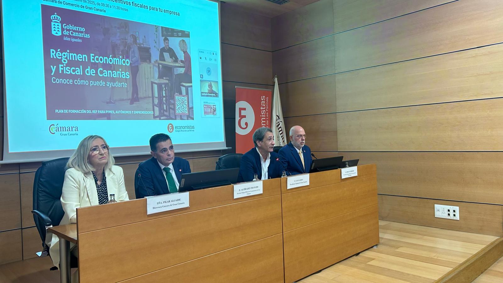 La jornada contó con la participación institucional del presidente de la Cámara de Comercio de Gran Canaria, Luis Padrón; el decano del Colegio de Economistas de Las Palmas, Alcibíades Trancho; la directora de la Cámara, Pilar Alcaide; y el comisionado del REF, José Ramón Barrera, quien intervino de forma online.
