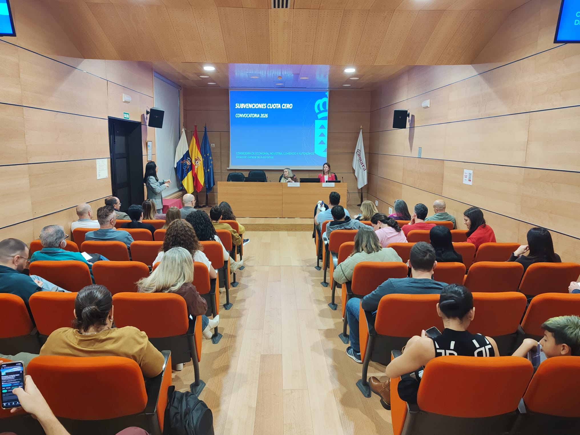 La Cámara Oficial de Comercio, Industria, Servicios y Navegación de Gran Canaria reunió esta mañana a más de 50 personas en una jornada informativa sobre la subvención de la Cuota Cero del Gobierno de Canarias para la promoción de nuevos emprendedores y emprendedoras, así como los requisitos necesarios para beneficiarse de esta ayuda.
