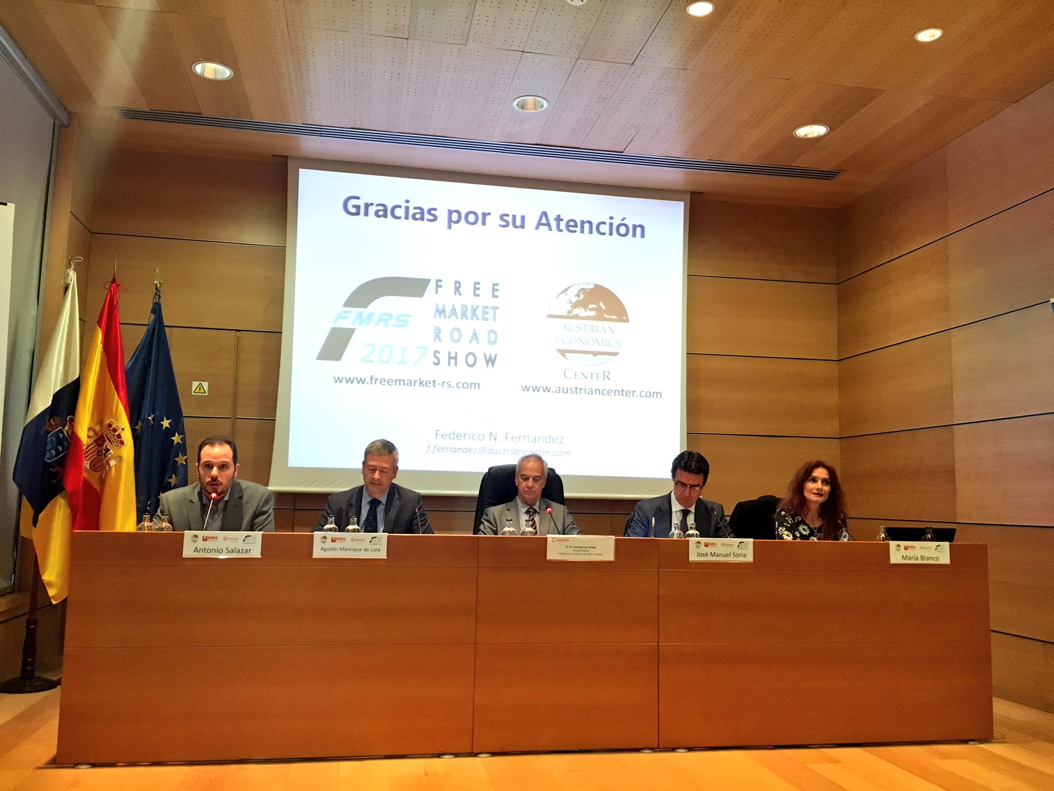 La capital de la isla se sumó a las casi 50 ciudades europeas que este año acogen el ‘IX Congreso Europeo Free Market Road Show (FMRS)’, una iniciativa del think tank Austrian Economics Center (Viena) que reúne en torno a una misma mesa a reconocidos economistas, líderes políticos, empresarios relevantes, periodistas y líderes de opinión para debatir acerca de los retos a que se enfrenta hoy Europa y sus posibles soluciones.