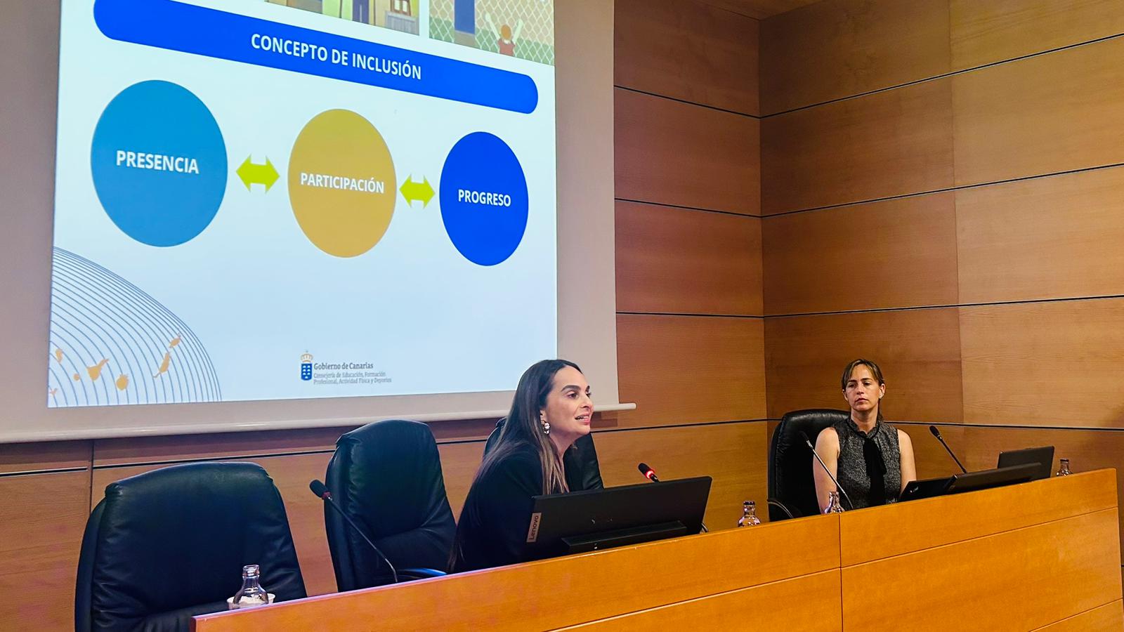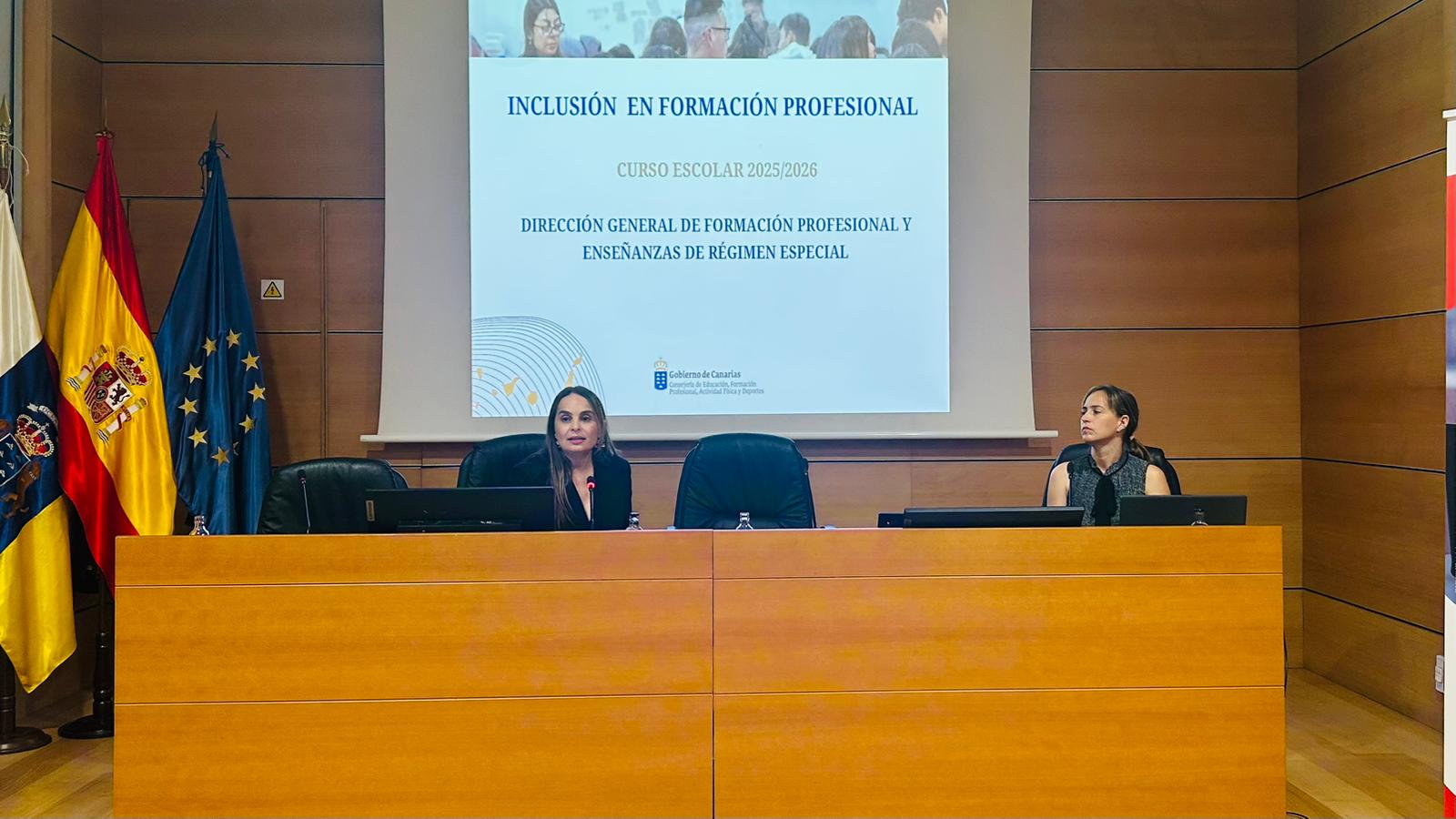 La jornada se abrió con la presentación institucional a cargo de Carolina León, Directora General de Formación Profesional y Enseñanzas de Régimen Especial, quien dio inicio al programa. A lo largo de la mañana se abordó el papel fundamental de la Formación Profesional como motor de inclusión y como herramienta que abre oportunidades reales para el alumnado. Se analizaron las prácticas que se están desarrollando en Canarias y se reflexionó sobre el modelo que permite avanzar hacia una FP más inclusiva. Además, se trató el marco normativo de la Ley de Empleo y Discapacidad, con la participación de la Fundación INSERTA, que aportó su experiencia en la materia. Posteriormente, se presentaron testimonios y experiencias reales de alumnos que han vivido procesos de inclusión laboral, ofreciendo una visión cercana y práctica de los retos que afronta la FP en este ámbito.