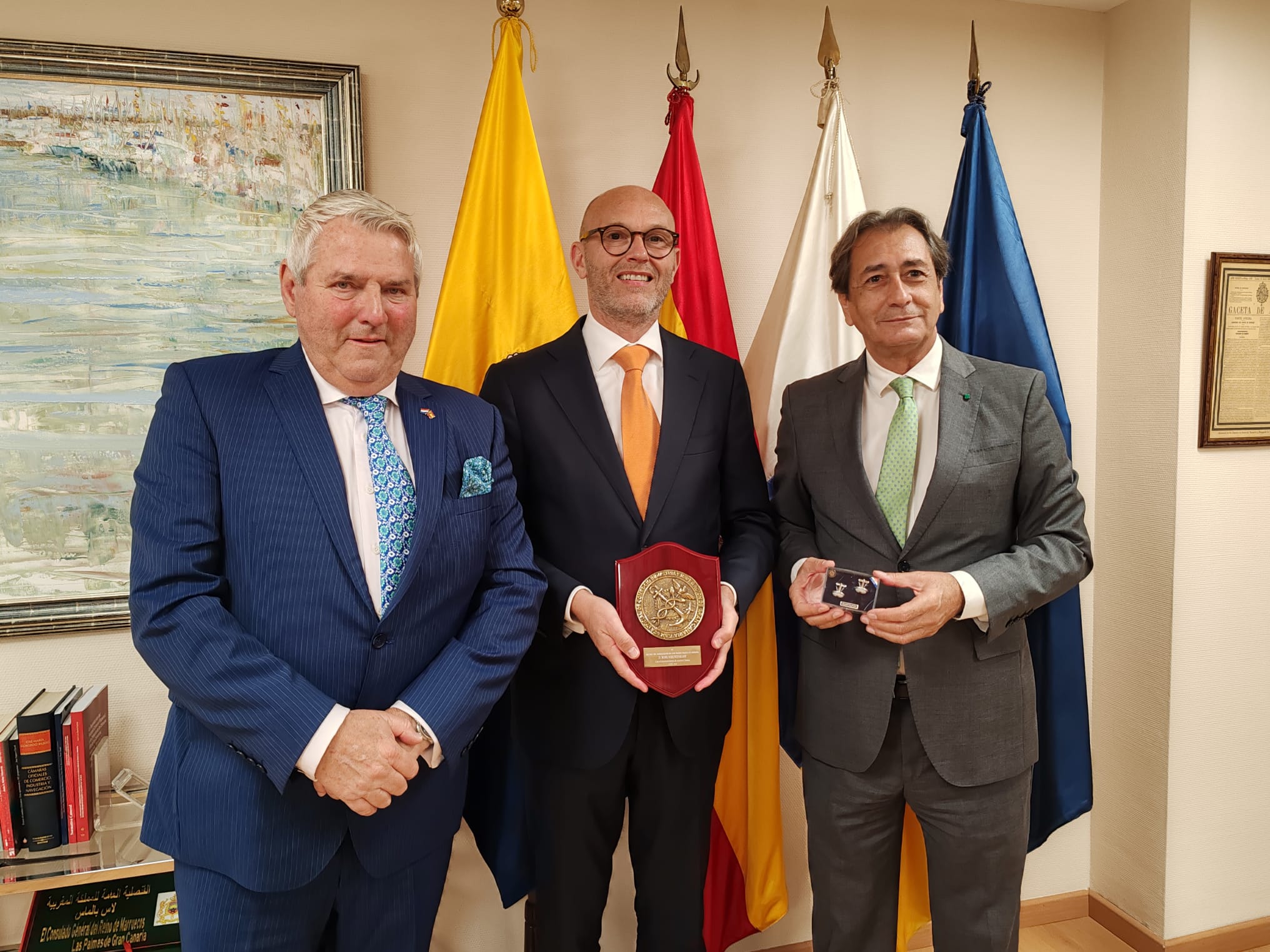 El presidente de la Cámara de Comercio de Gran Canaria, Luis Padrón, ha mantenido una reunión con el embajador de Países Bajos en España, Roel Nieuwenkamp, acompañado del cónsul honorario de Países Bajos en Canarias, Stan Weytjens, para analizar el estado actual de las relaciones entre Países Bajos y Canarias, y considerar posibles vías de colaboración.