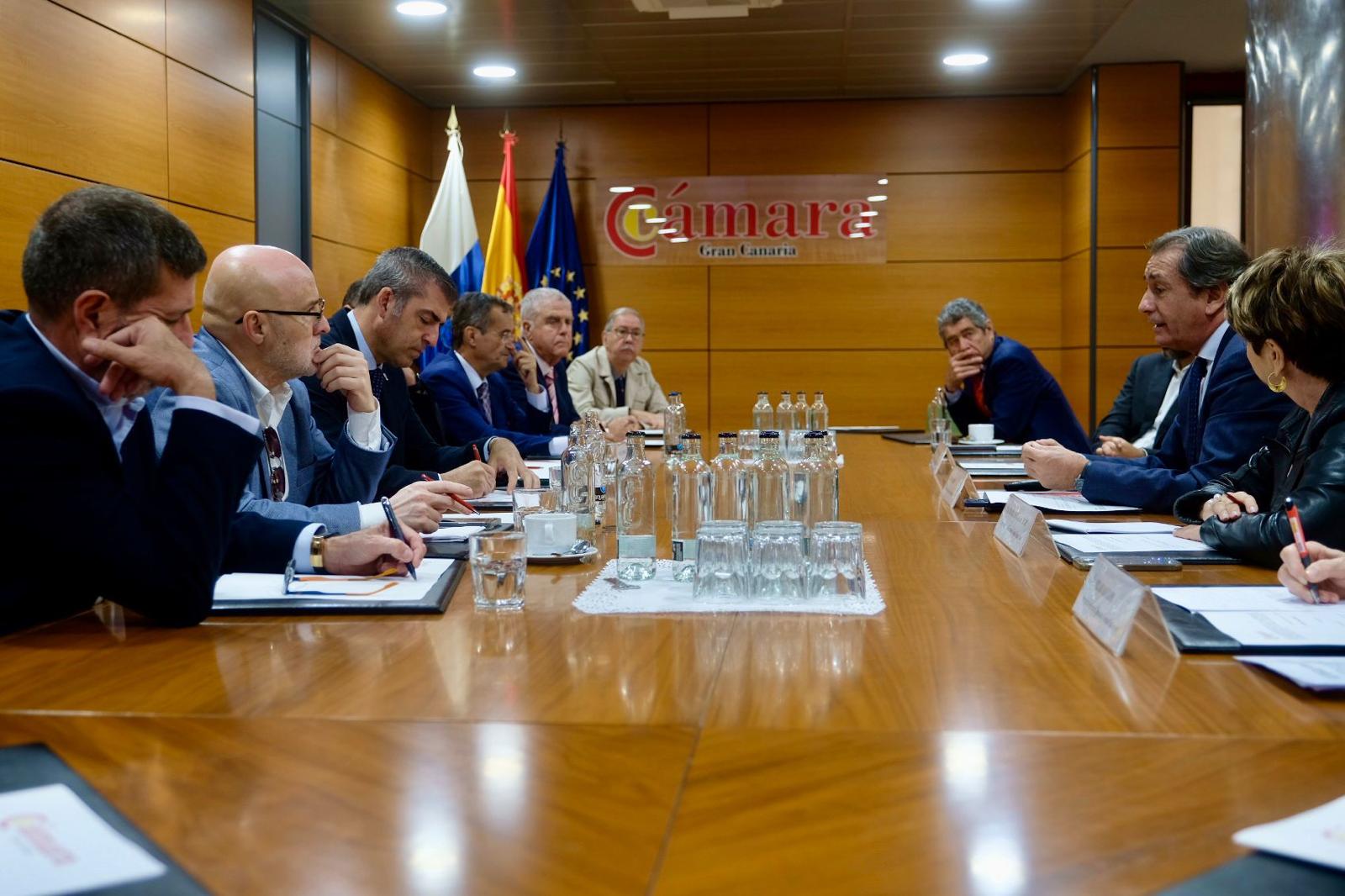 El vicepresidente y consejero de Economía, Industria, Comercio y Autónomos del Gobierno de Canarias, Manuel Domínguez, acompañado del viceconsejero de Industria, Comercio y Consumo, Felipe Afonso El Jaber, asistió hoy a la reunión del Comité Ejecutivo de la Cámara de Comercio, Industria, Servicios y Navegación de Gran Canaria.