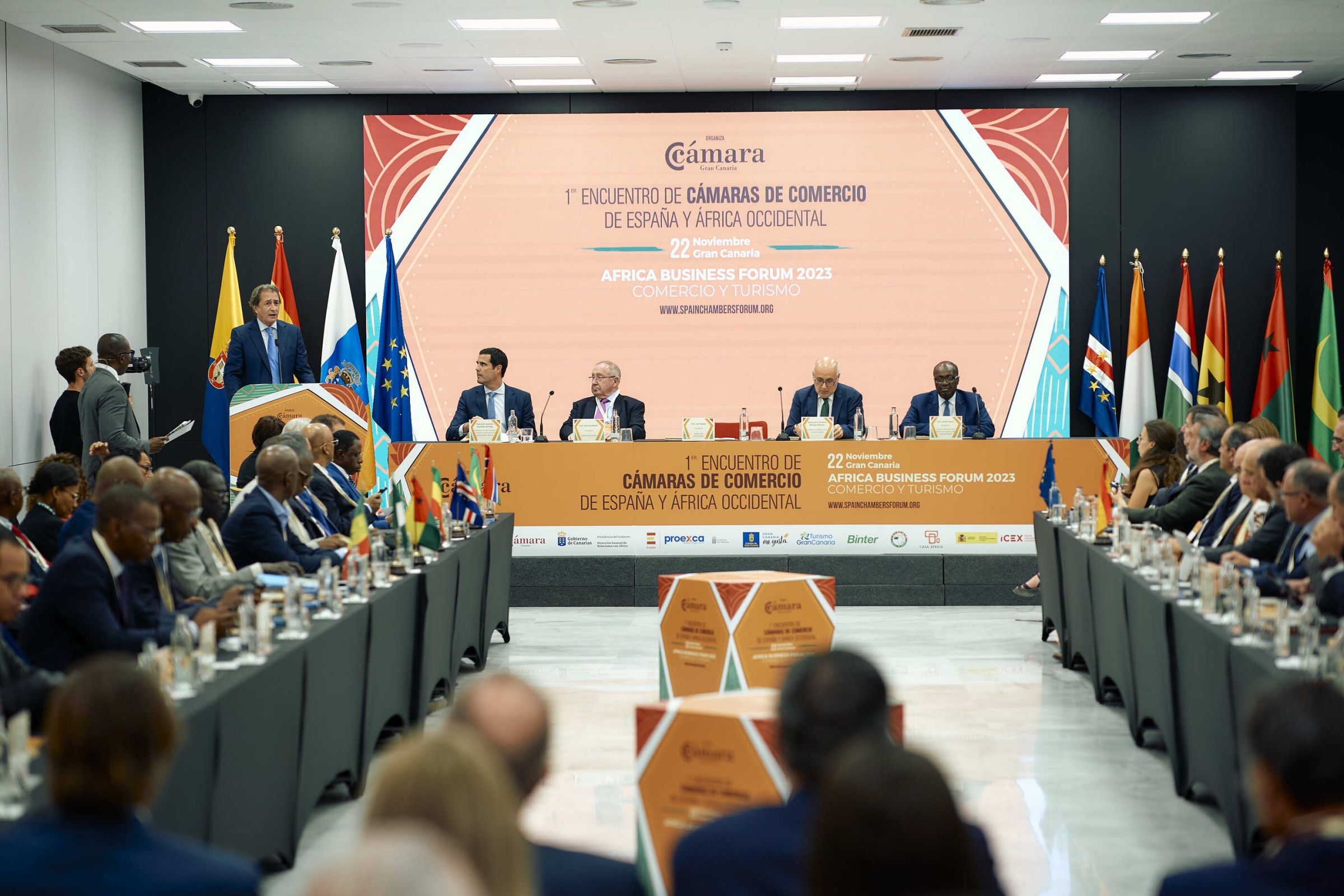 El evento arrancó con las intervenciones del presidente de Cámara de España. José Luis Bonet; el presidente del Cabildo de Gran Canaria, Antonio Morales; el viceconsejero de Economía e Internacionalización del Gobierno de Canarias, Gustavo González de Vega, y el presidente de la Federación de Cámaras de Comercio de África Occidental, Farman Toure.