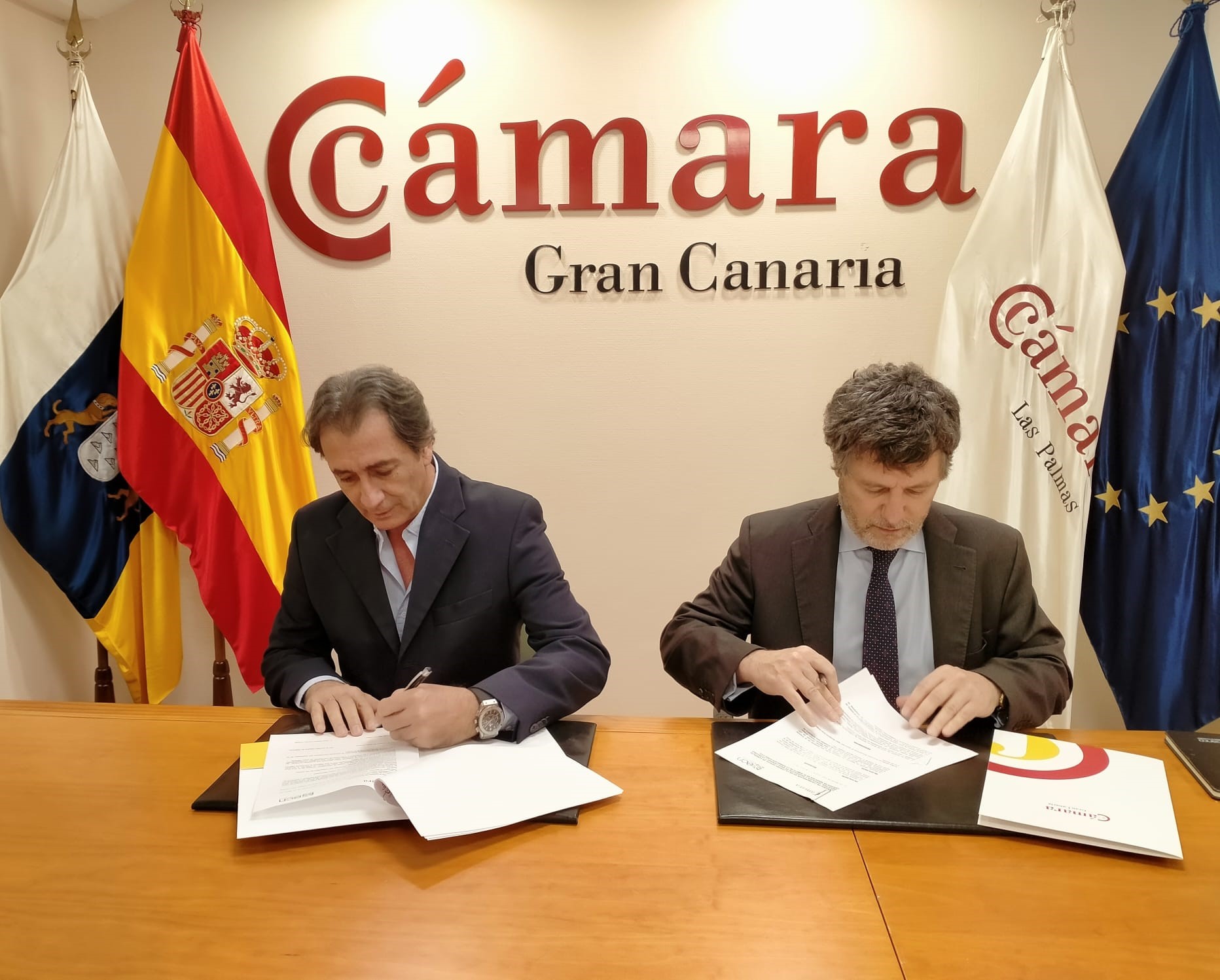 La Cámara Oficial de Comercio, Industria, Servicios y Navegación de Gran Canaria, y la Escuela Canaria de Negocios, han firmado un convenio de colaboración en el ámbito de la formación directiva, que tendrá como principal acción la celebración del programa de doble titulación Máster Executive en Administración y Dirección de Empresas y el Programa Especializado en Marketing Digital y Gestión Comercial en las instalaciones de la Cámara, y la difusión del MBA de Turismo.