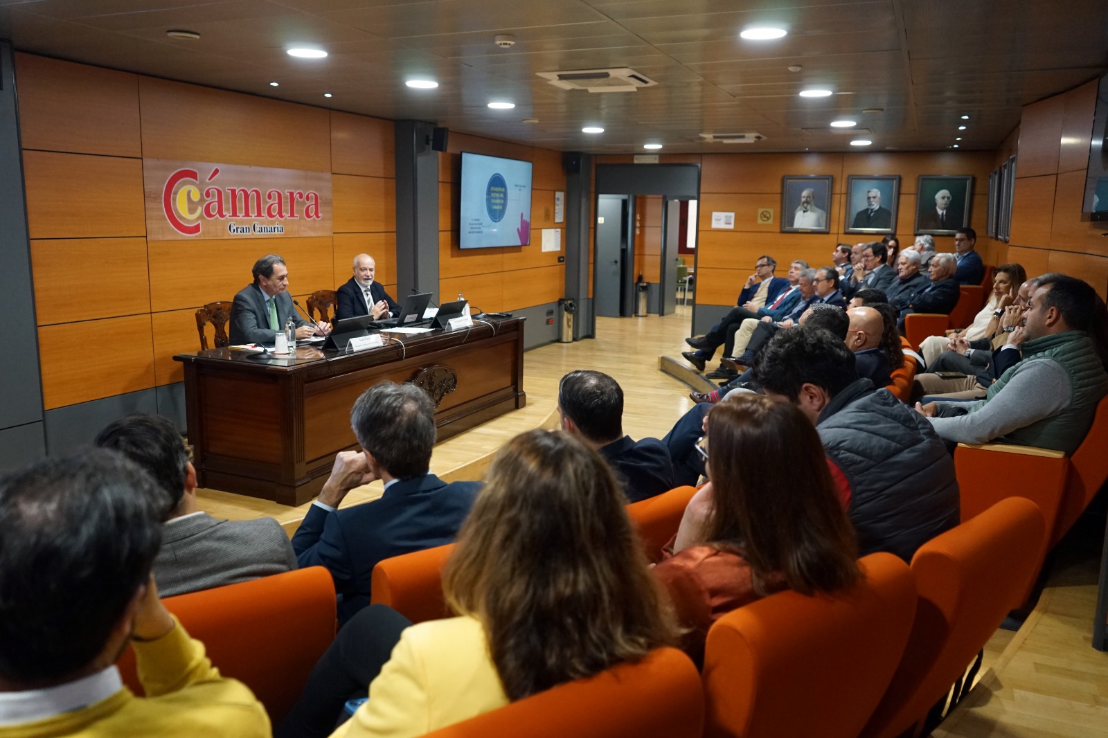 La Cámara Oficial de Comercio, Industria, Servicios y Navegación de Gran Canaria, presentó ante un importante número de empresas, la nueva comisión de Turismo de la institución y las líneas de trabajo que se van a seguir para propiciar el éxito de las empresas grancanarias del sector. En esta presentación intervinieron el presidente de la institución cameral, Luis Padrón, y el vicepresidente de la Cámara, y presidente de la Comisión, Santiago de Armas.