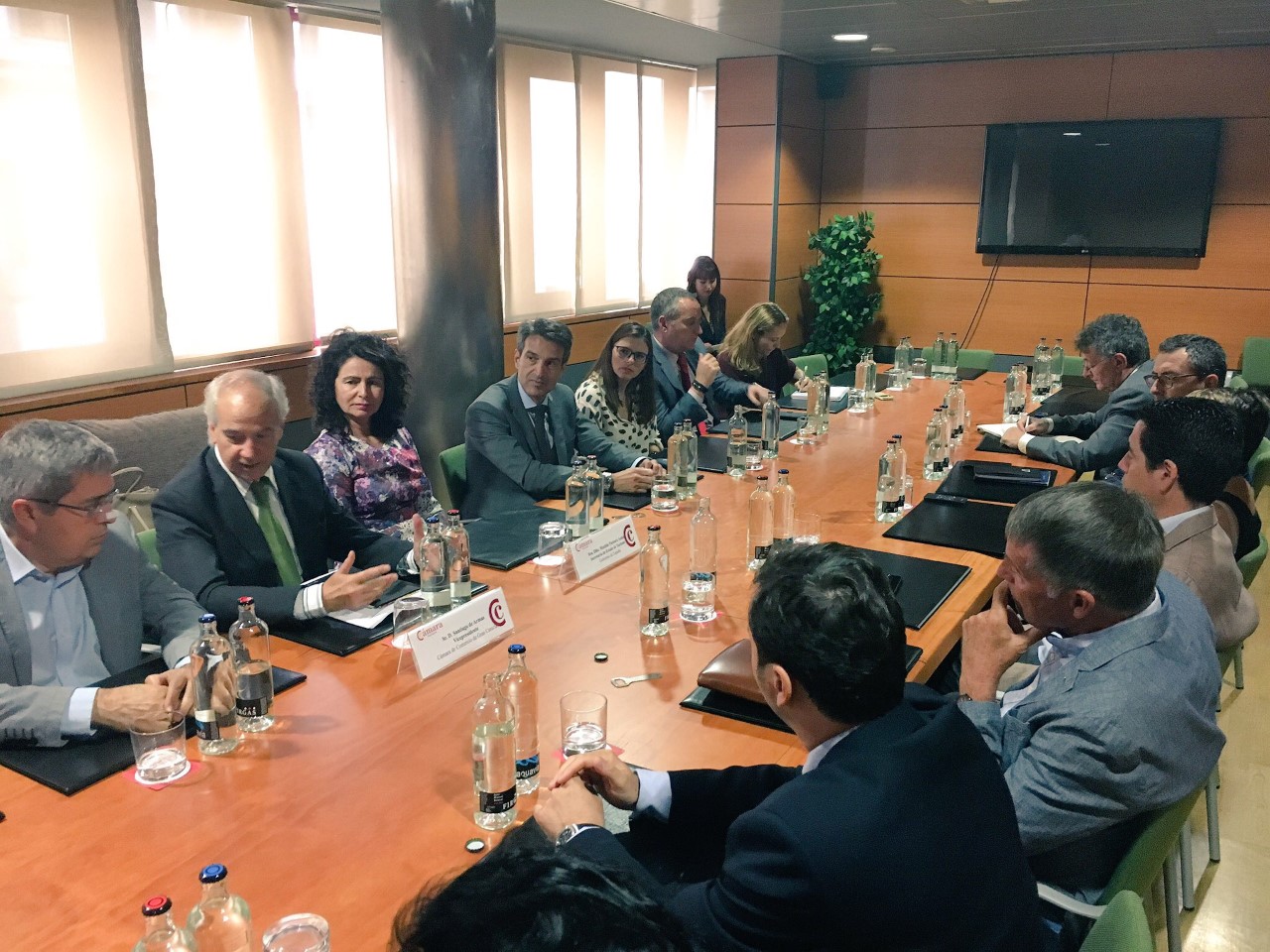 La Secretaria de Estado de Turismo, Matilde Asián, asistió hoy a la reunión organizada por la Comisión de Turismo de la Cámara de Gran Canaria encabezada por su presidente, Santiago de Armas.