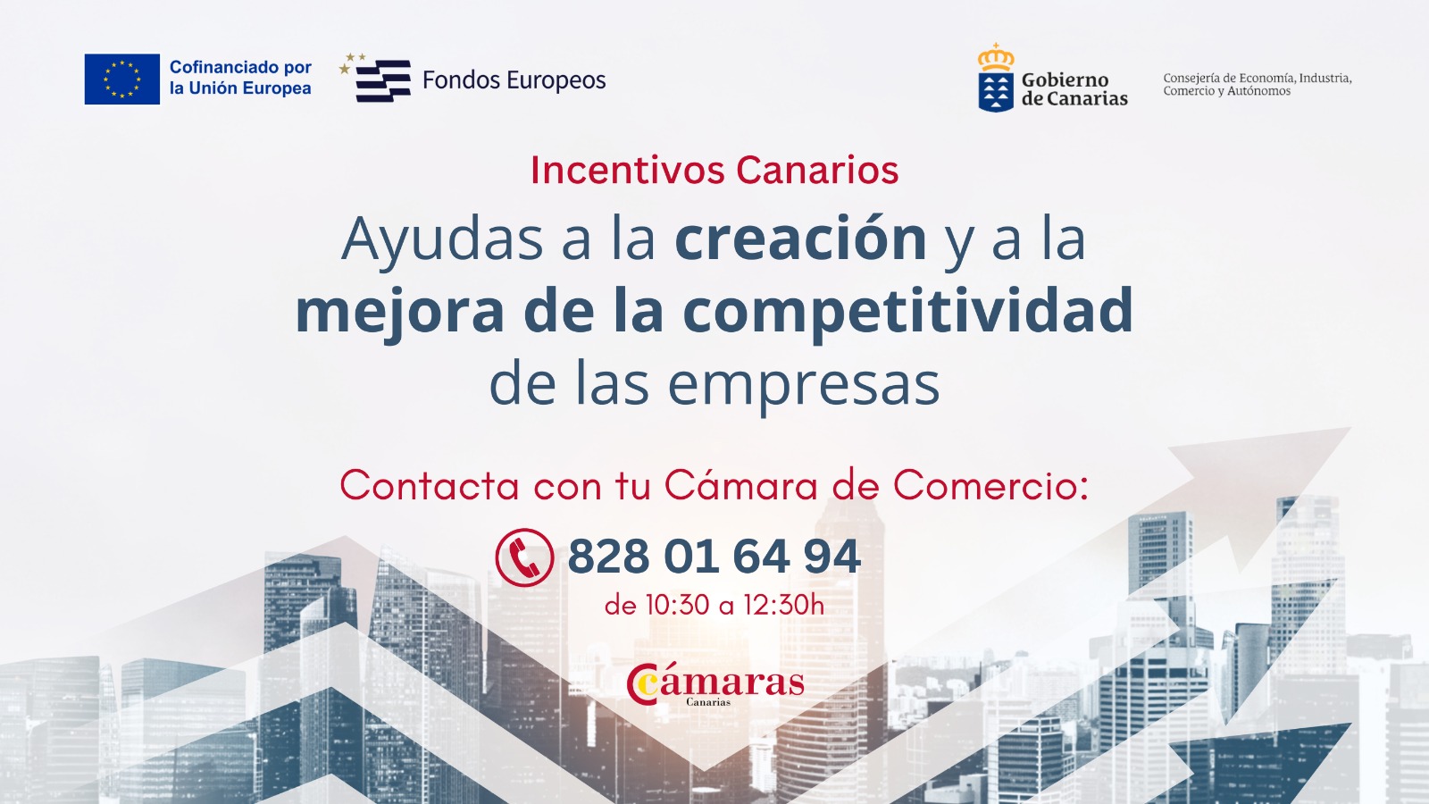 Las Cámaras de Comercio de Canarias son las entidades colaboradoras de la Consejería de Industria, Comercio y Autónomos del Gobierno de Canarias en la gestión de las ayudas a la creación y a la mejora de la competitividad de las empresas, cofinanciadas por Fondos Europeos.